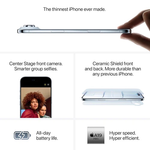 - SIM Card: Dual eSIM, iPhone Air use advanced eSIM technology for more convenience and security (not compatible with physical SIM cards)